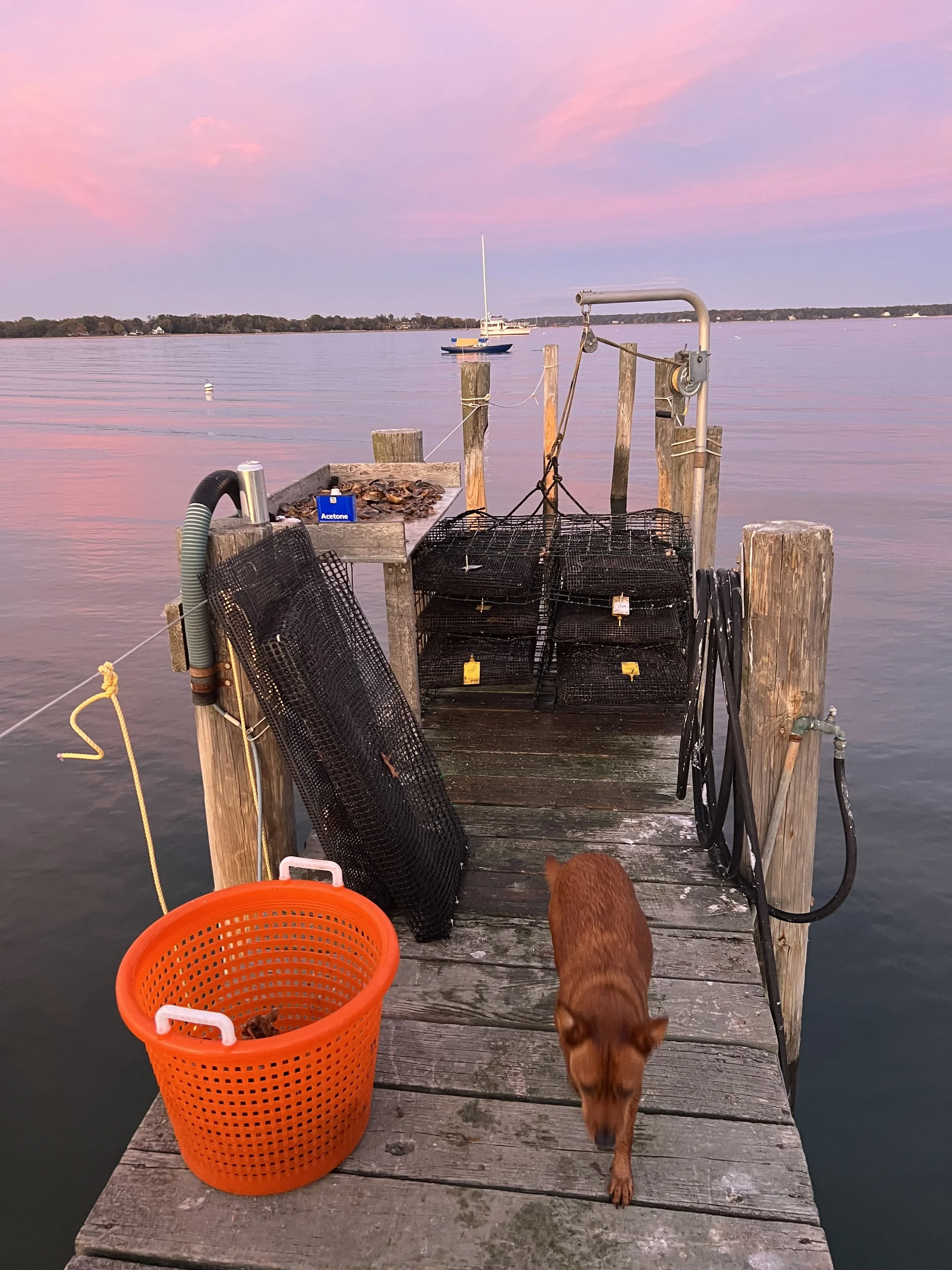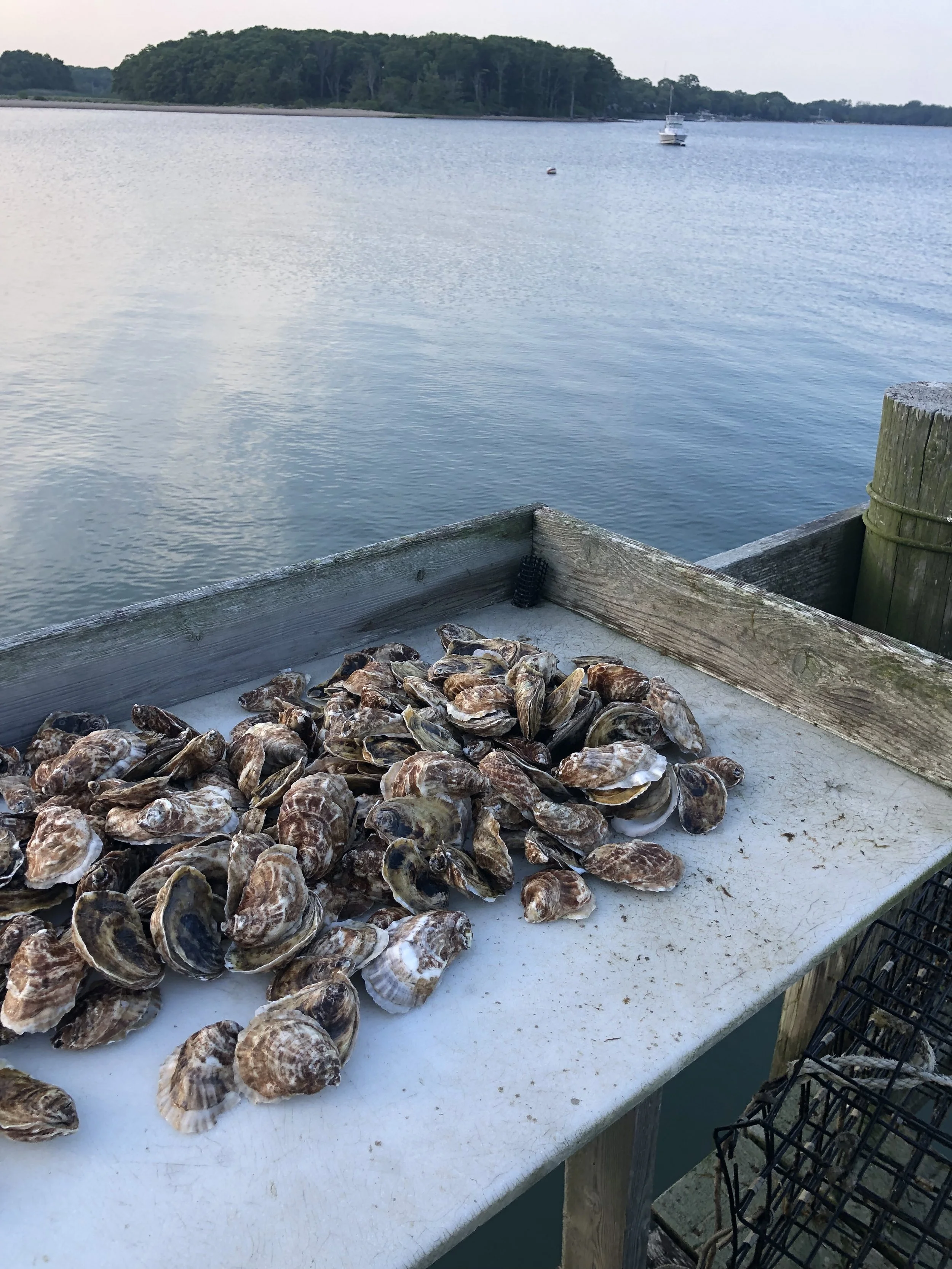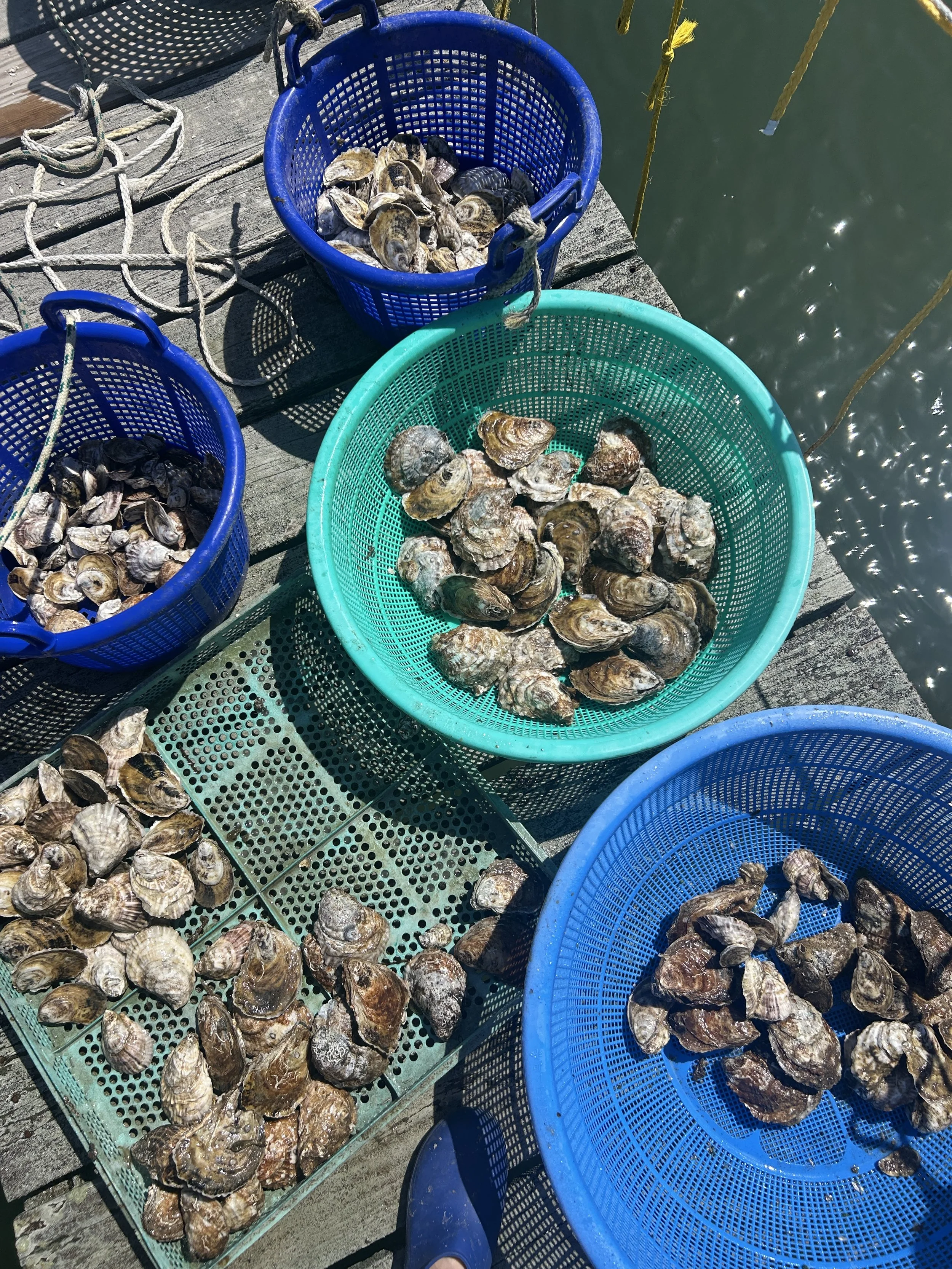 Oyster growing and marine restoration project located off of a dock in Pipes Cove, Greenport, NY– Shinnecock/Cortchaug land and waters.