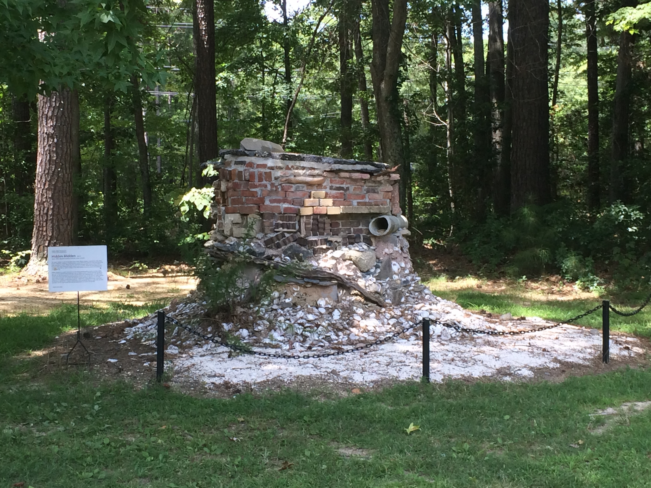 HIDDEN MIDDEN is a site specific sculpture installation and aquatic restoration project lead by Kaitlin Pomerantz through her residency at Annmarie Garden; with the collaborative assistance of John Broderick Heron. The installation is on permanent view.