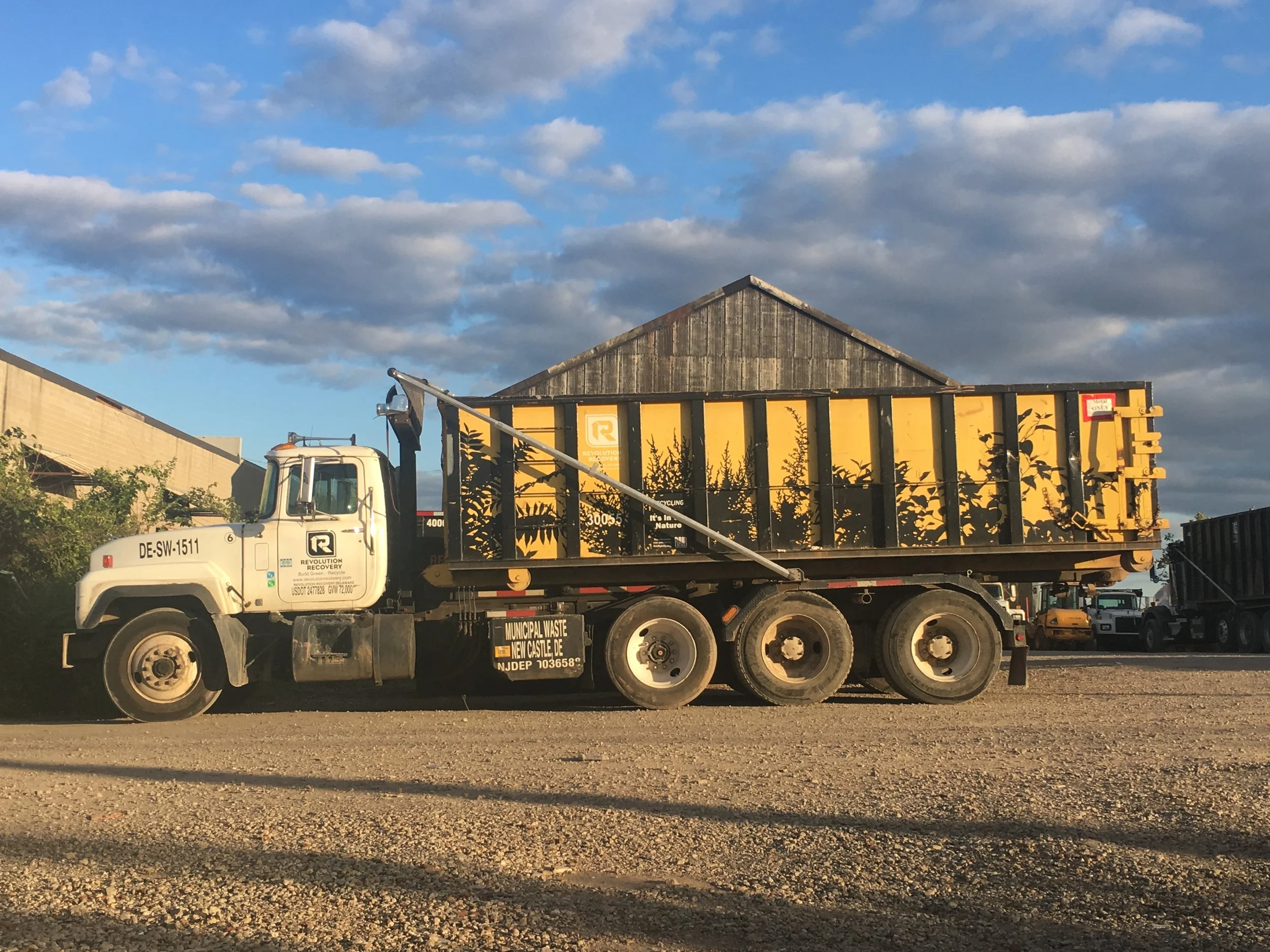A project lead and designed by Kaitlin Pomerantz for RAIR Philly. Four dumpsters feature phytoremediating plants local to Philadelphia and the RAIR site, highlighting the presence of "recycling" in urban, industrial nature.